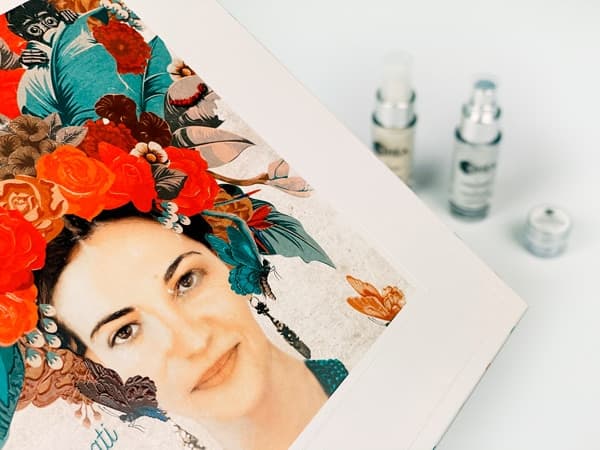 L’élément principal de ce coffret est la magnifique illustration qui saute directement aux yeux. Celle-ci est positionnée sur le couvercle et accompagnée de la citation: “Tombez amoureux de vous, de la vie et de qui vous voulez.” de Frida Khalo.