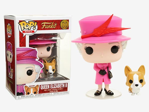 Pour la jeune génération, en revanche, on trouve une poupée de style LOL représentant la reine dans un costume fuchsia, accompagnée de son fidèle corgi.