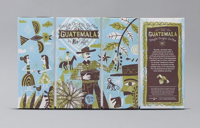 Rio Coffee produce caffé di eccezionale qualità che proviene da diverse zone geografiche: Australia, Guatemala, Kenya e Brasile. Su ogni scatola sono raffigurate le immagini dei luoghi, delle persone dei metodi di produzione di caffé in grado di rappresentare perfettamente le diverse provenienze geografiche.