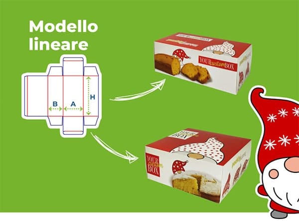 Per confezioni di Natale destinate a contenere dolci o oggetti dalla forma regolare, abbiamo selezionato il modello astuccio lineare alette pari. Come potete vedere, il modello è sempre lo stesso, ma potete personalizzarlo in base alla dimensione del vostro prodotto e al modo in cui preferite riempirlo.